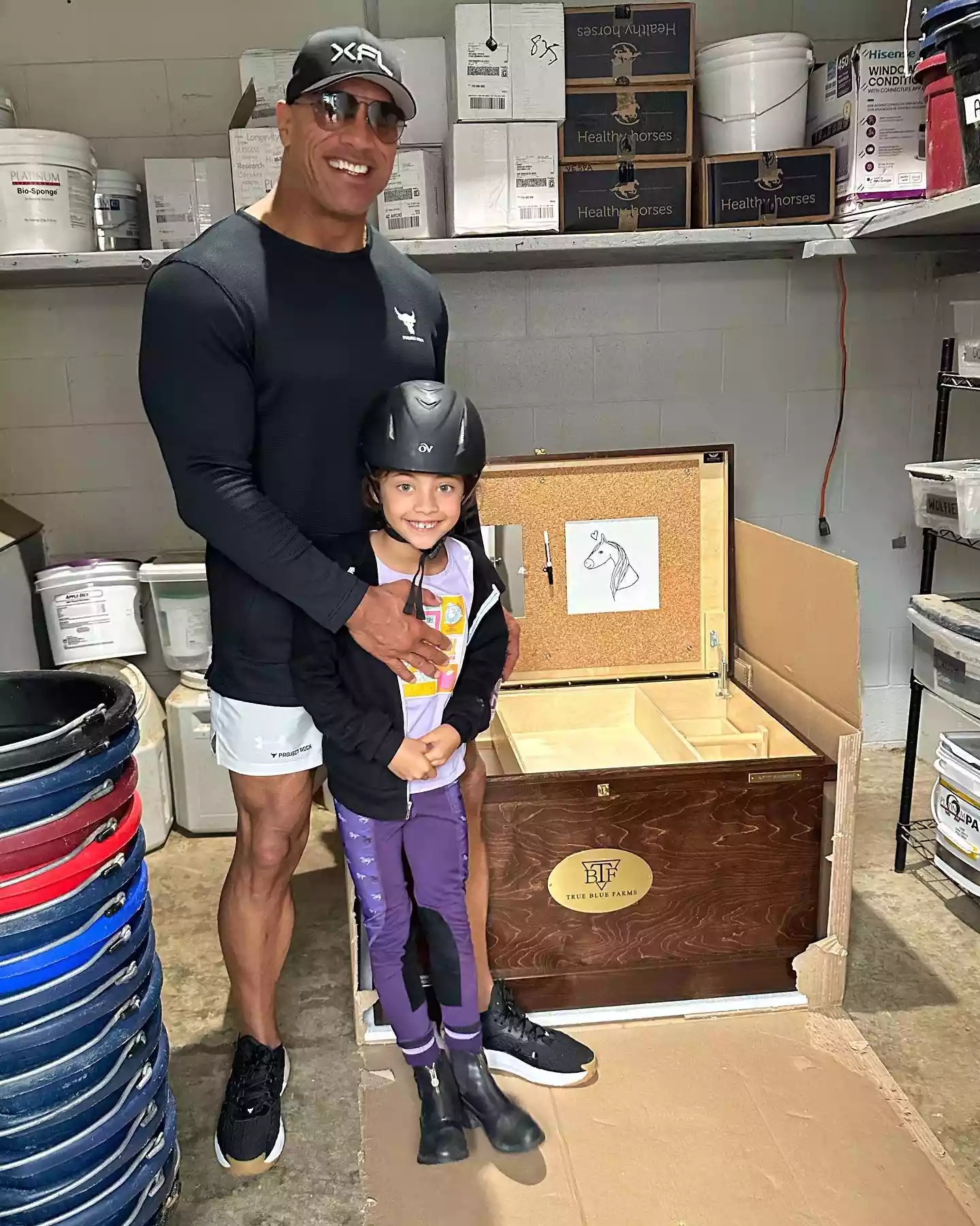 Jasmine took up horseback riding, and Johnson was a proud dad when she earned her first tack trunk, expressing admiration for her “discipline, commitment and focus.”